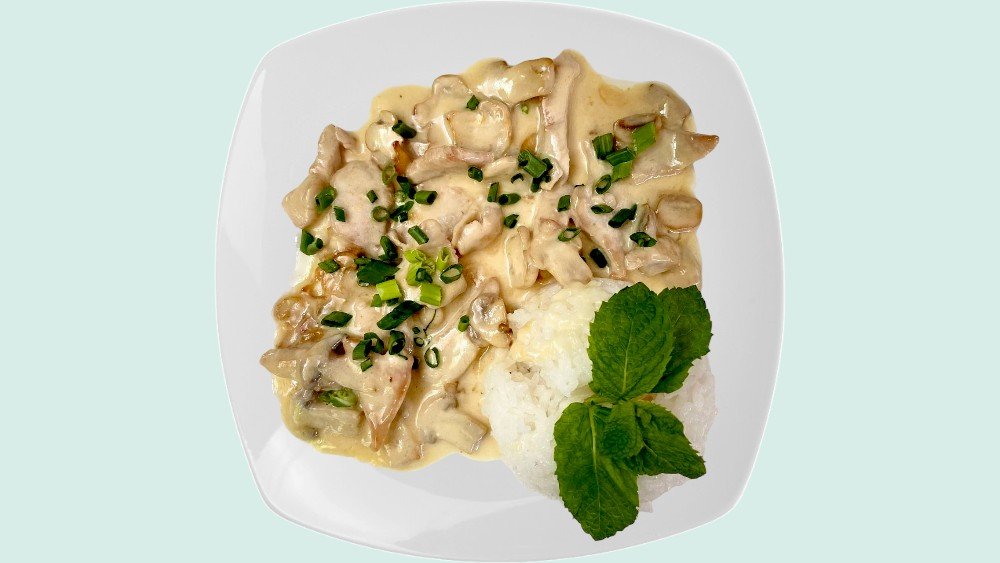 Куриная грудка, сливка, грибы.
