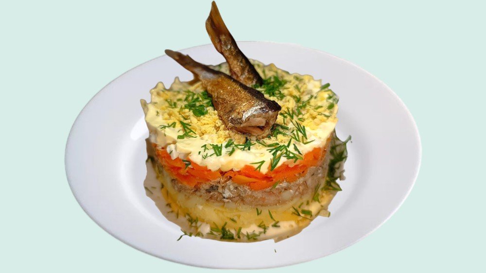 Картофель, морковь, шпроты рыбные, яйцо, майонез