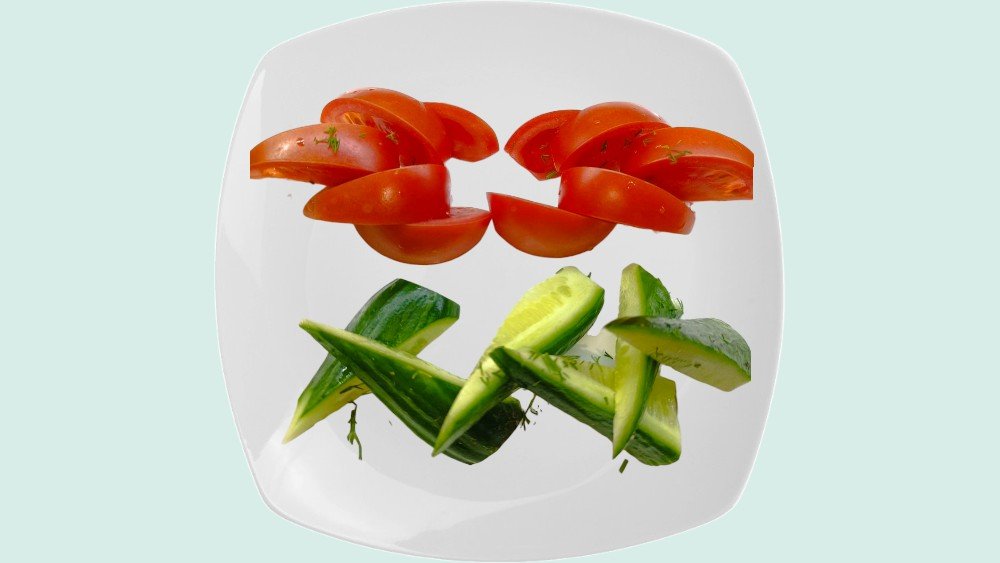 Помидоры, огурцы.
