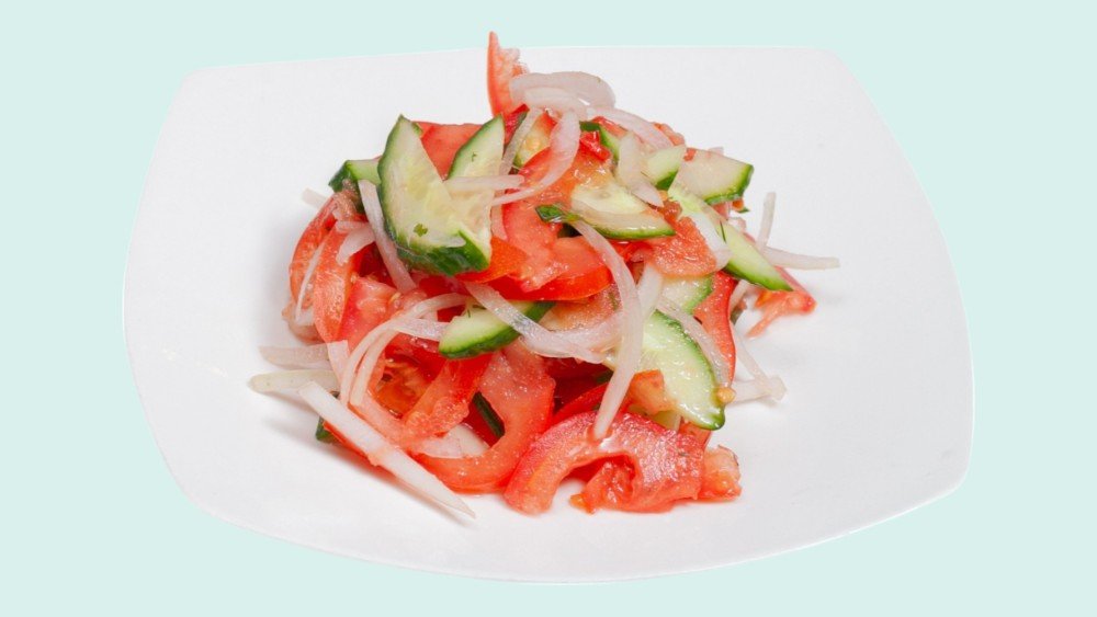Помидоры, огурцы, лук.
