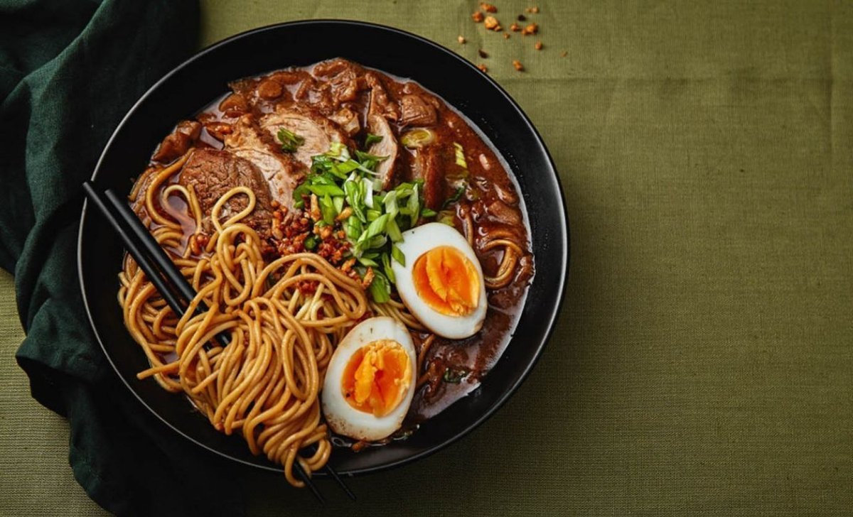 Пшеничная лапша, яйца, говяжье мясо, огурцы, кимчи, соус рамëн