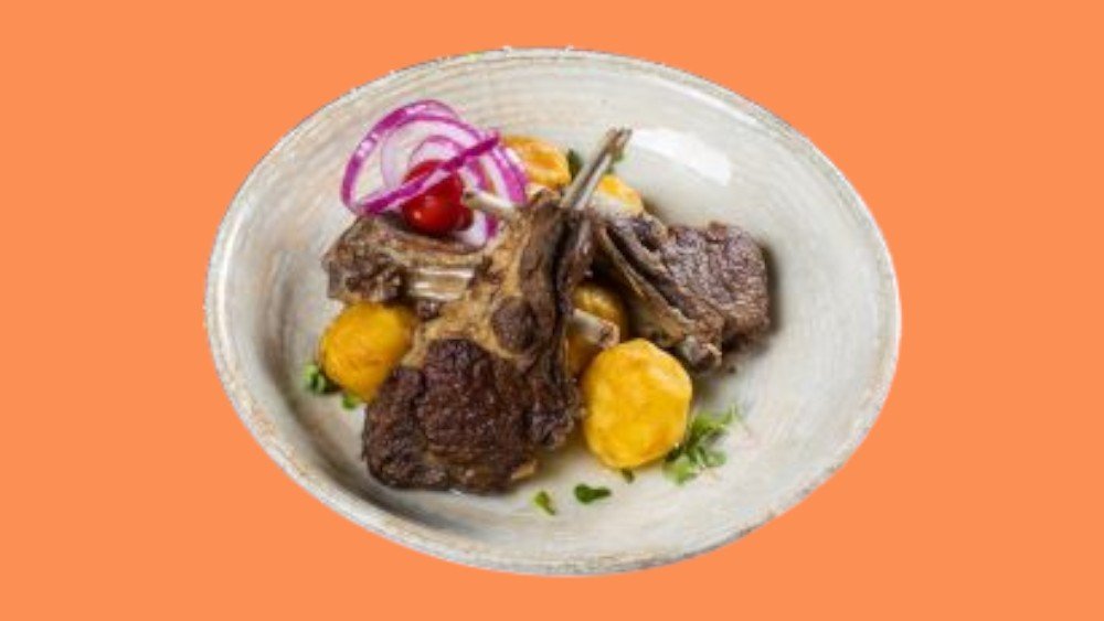 Баранья корейка, картофель, лук шалот