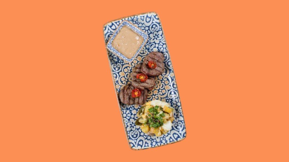 Вырезка говядины, турецкий рис, шпинат, соус булькоги