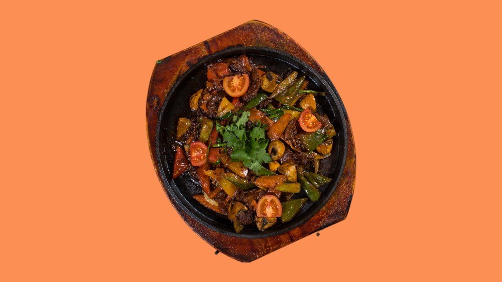 Филе говядины, помидоры черри, болгарский перец