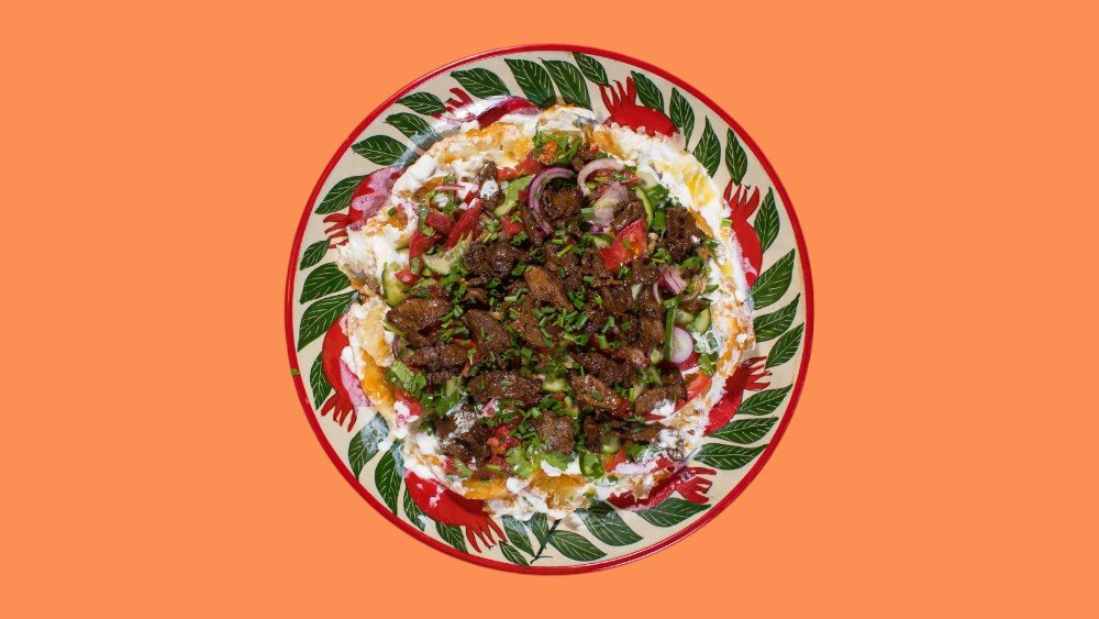 Мясо телятины, турецкие специи, зелень, красный перчик