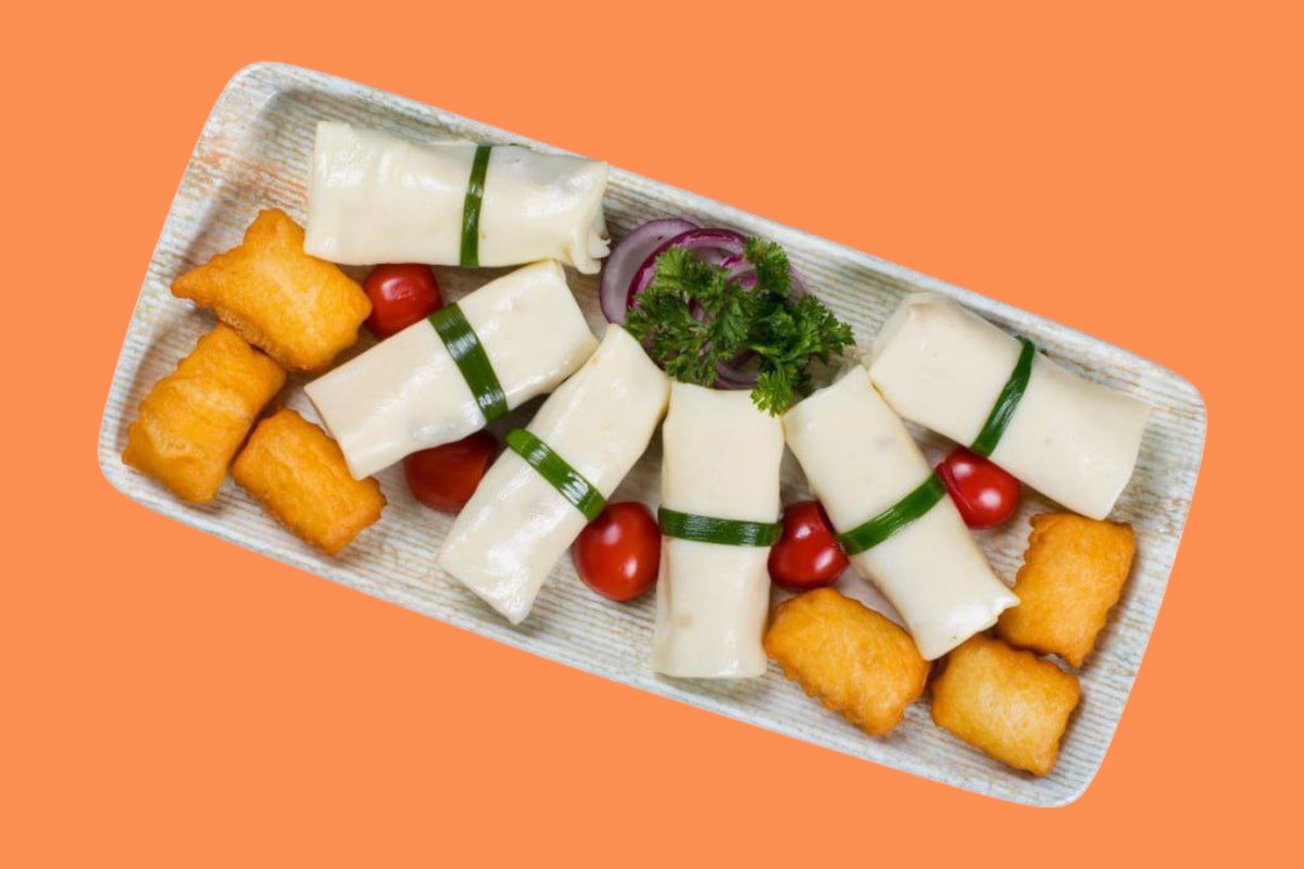 Рулетики из фила теста начинённые говяжьим фаршем, специями и сыром