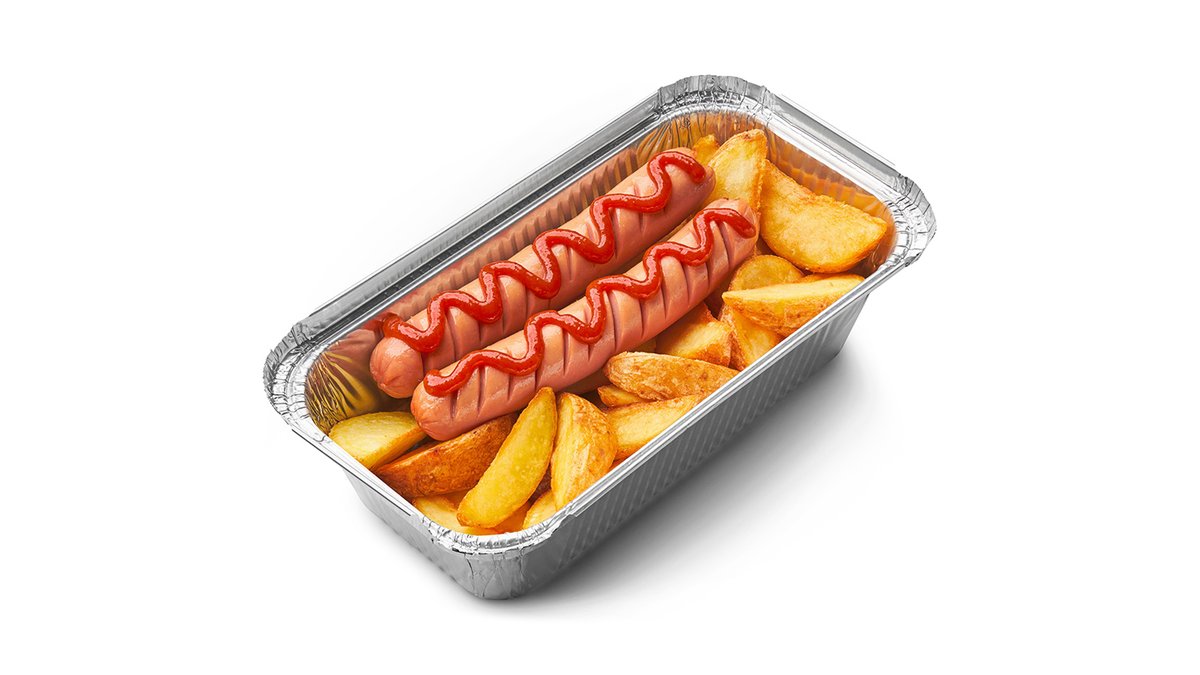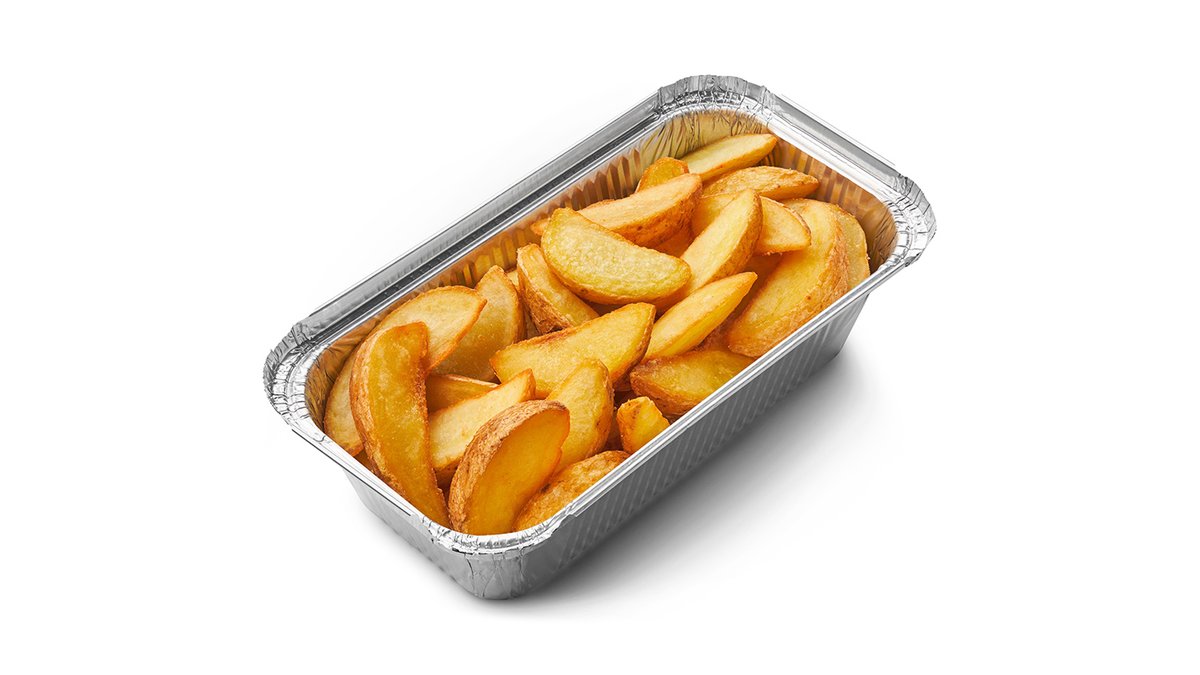 Румяный хрустящий картофель по-деревенски с аппетитными сочными сосисками В комплекте: Вилка (1 шт.)