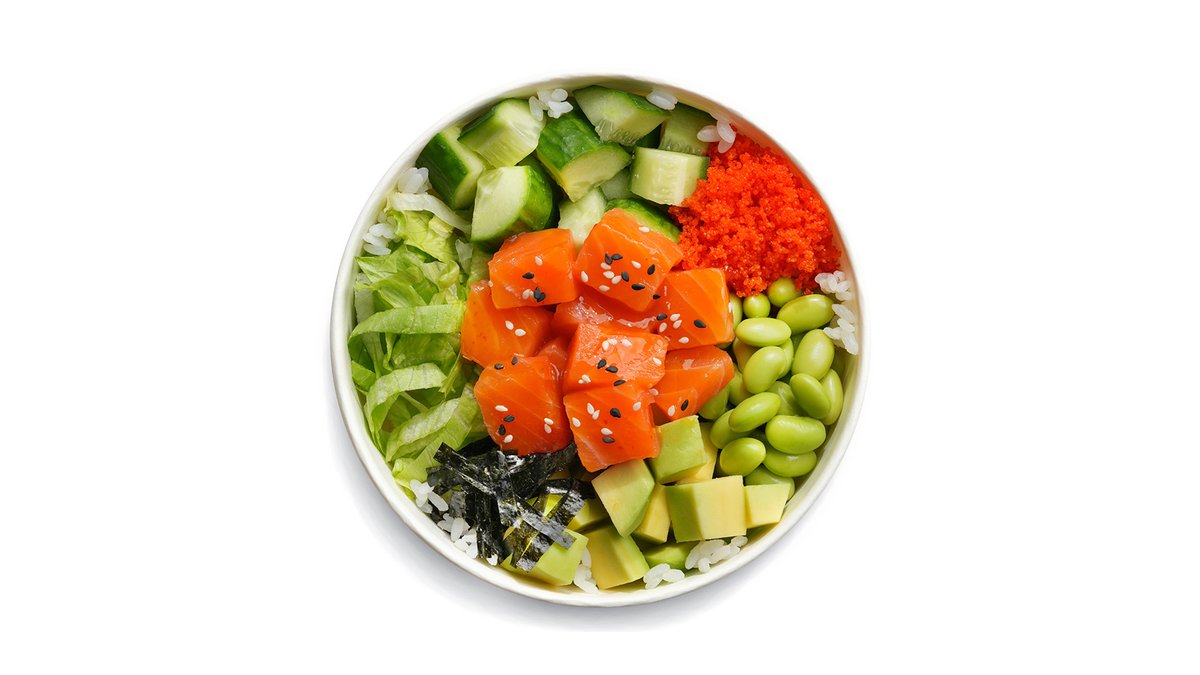 Яркий и сбалансированный поке на основе риса с нежным лососем, хрустящим огурцом, салатом айсберг, кремовым авокадо и зелеными бобами. Икра масаго и кунжут придают блюду изысканную текстуру. В комплекте: Вилка (1 шт.)