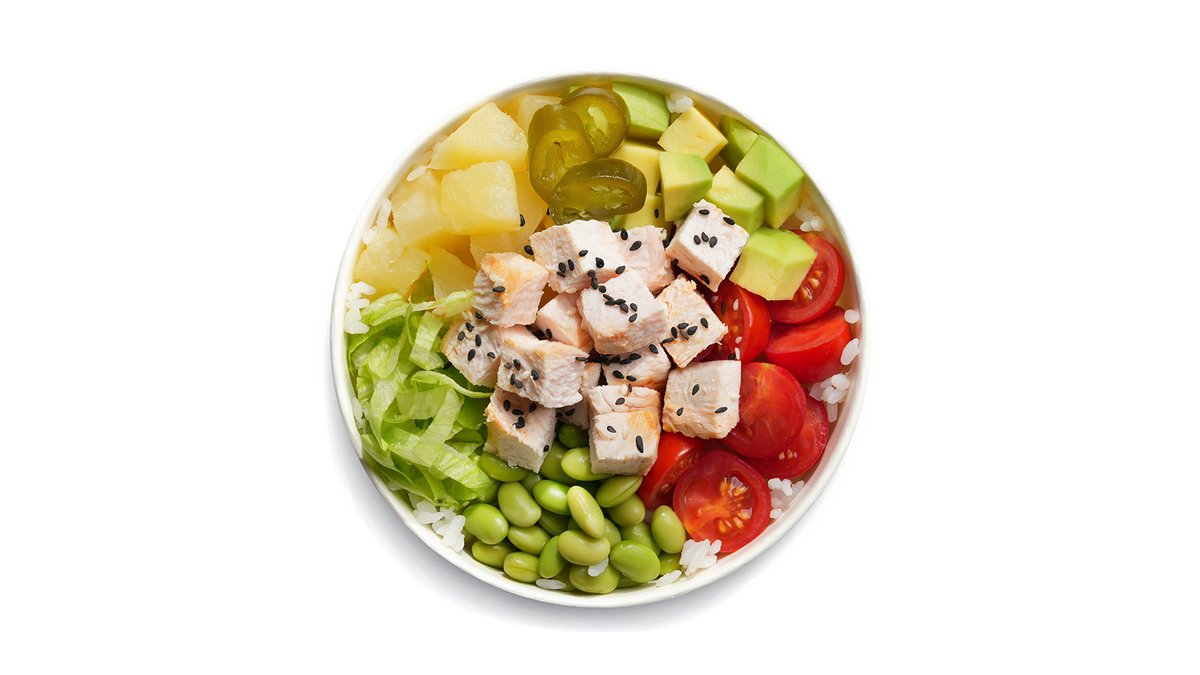 Яркий поке на основе риса с сочной куриной грудкой помидорами черри, зелеными бобами, кремовым авокадо и хрустящим айсбергом. Ананас добавляет лёгкую сладость. Острая нотка халапеньо придает блюду насыщенный вкус и экзотический характер. В комплекте: Вилка (1 шт.)