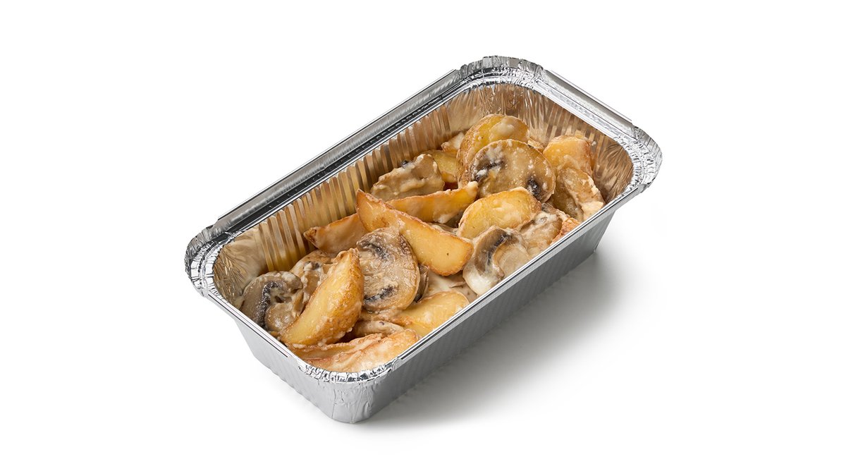 Жареный картофель по-деревенский в соусе из сливок с ароматными шампиньонами В комплекте: Вилка (1 шт.)