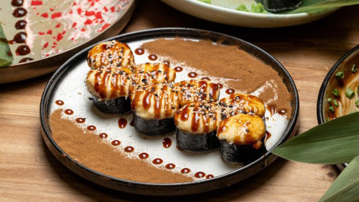 Ролл с насыщенным вкусом: хрустящая жареная кожа лосося, нежное авокадо, завернутые в рис и нори