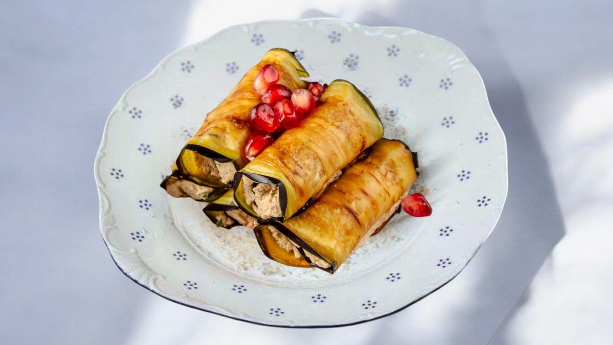 Рулетики из баклажан с ореховой пастой