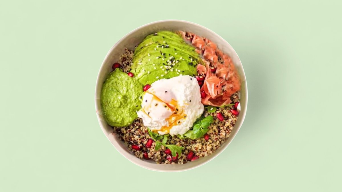 Bukë integrale, avokado, vezë poshe, sallatë e marinuar