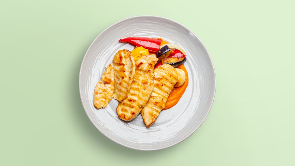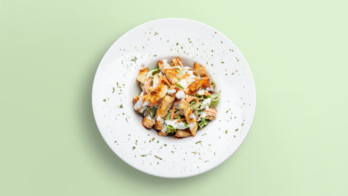 Chicken, iceberg, tomatoes, caesar sauce, parmesan