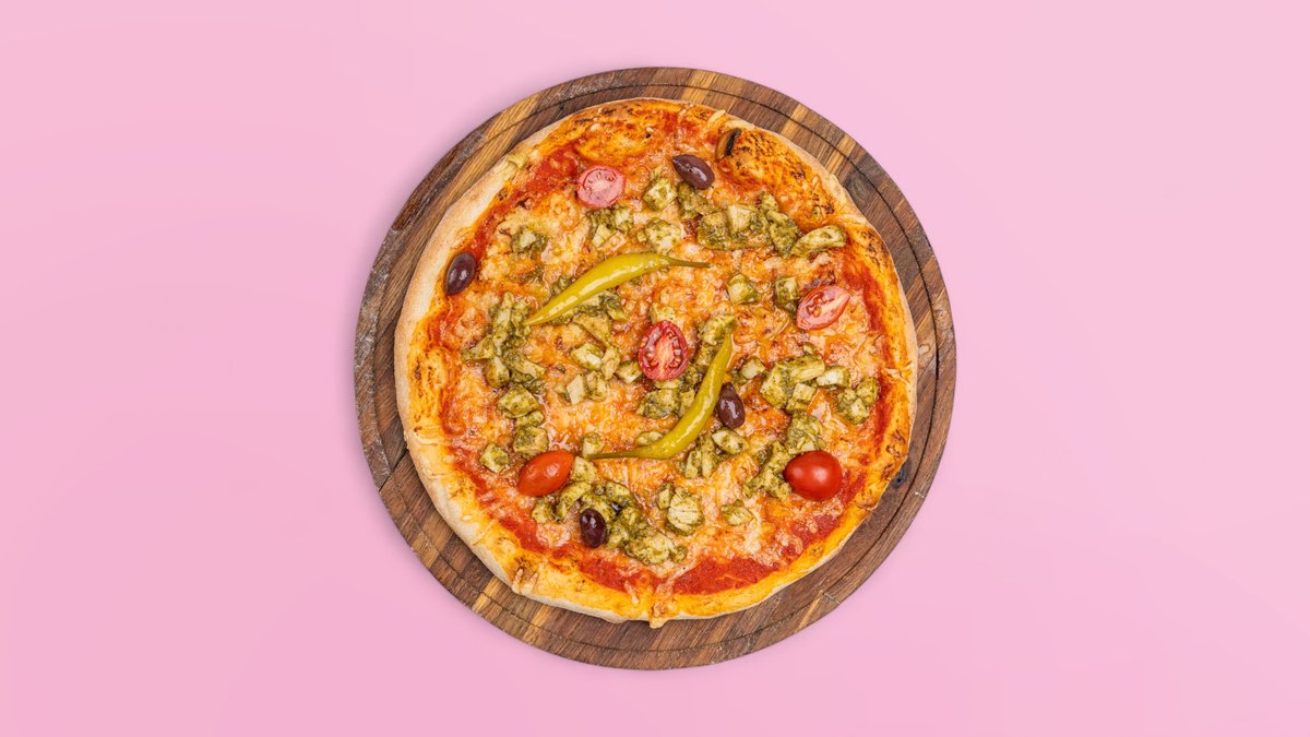 Size 40 cm, ham, sausage, mushrooms, peppers, olives