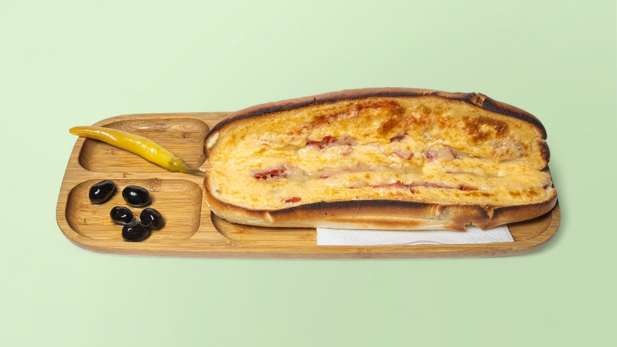 Sos domatesh, majonezë, proshutë, kaçkavall