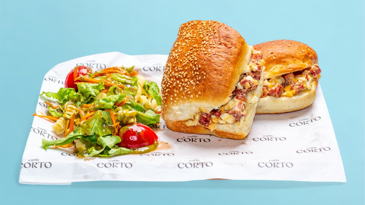 Boiled eggs, homemade sausage, black pepper, mayo, cold pasta salad