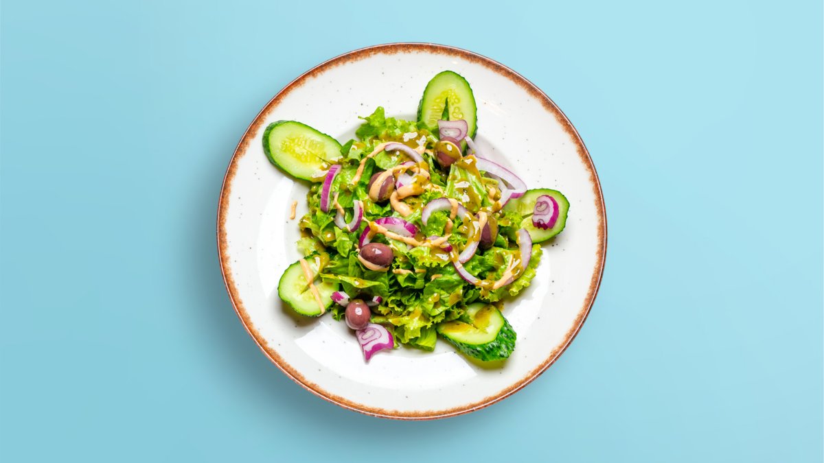 Green salad, cucumbers, onions, olives