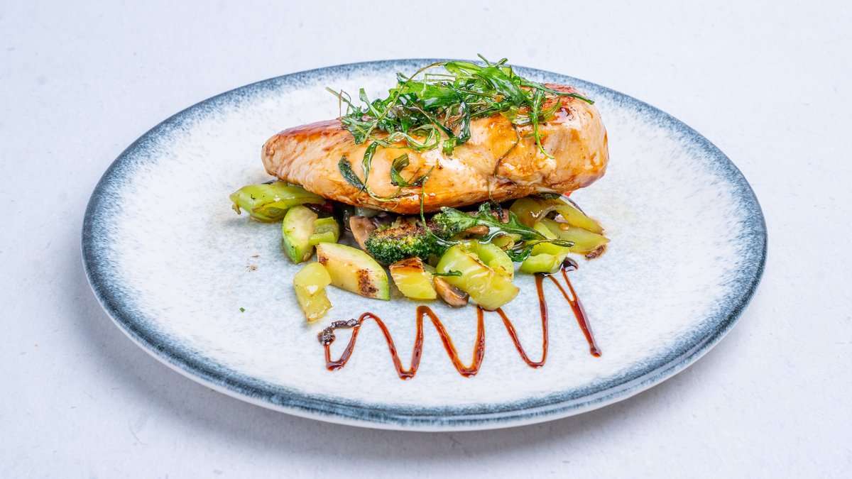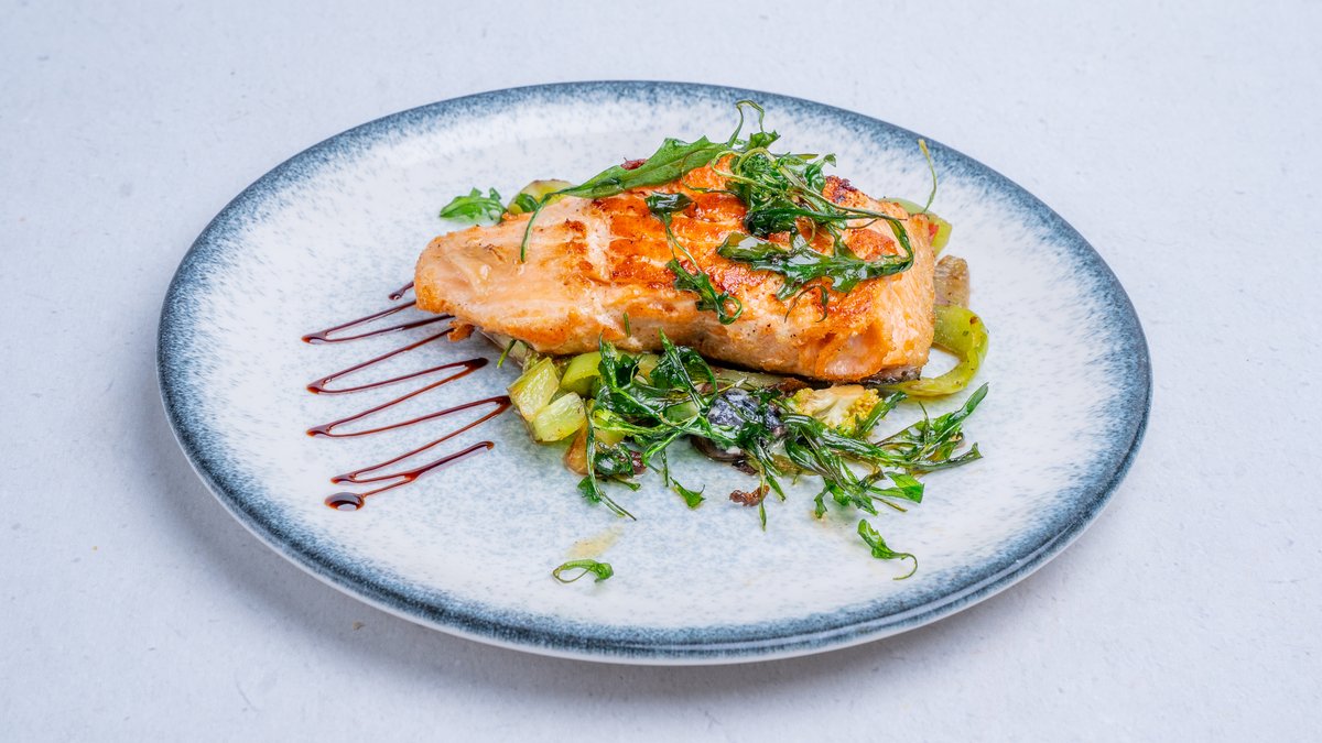 Caramelized teriyaki salmon, mashed
