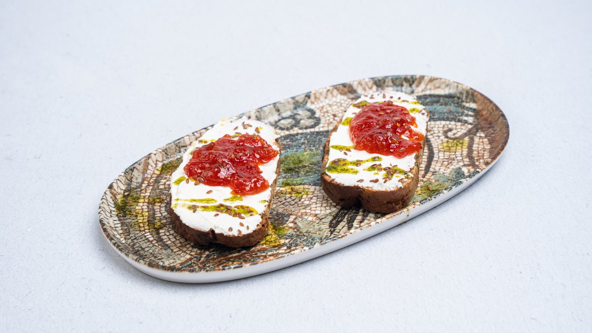 Bruschetta with Tomato Jam & Cream Cheese