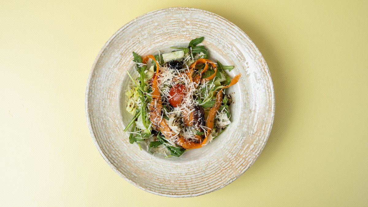Rukolla, iceberg, domatina, hurmë, fiq, vaj ulliri, karrota, ullinj kallamata