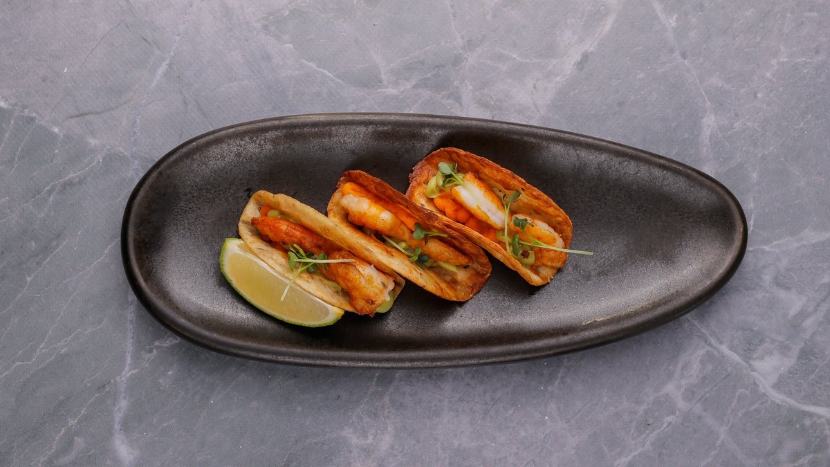 Karkaleca, gyoza, krem lulelake, pastë miso, krem selino