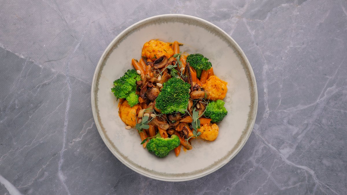 Brokoli, lulelakër, qiqra, fara pishe, kërpudha shitake, salcë domatesh