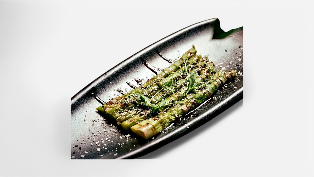 Shparg, susam, krem soja, microgreens.