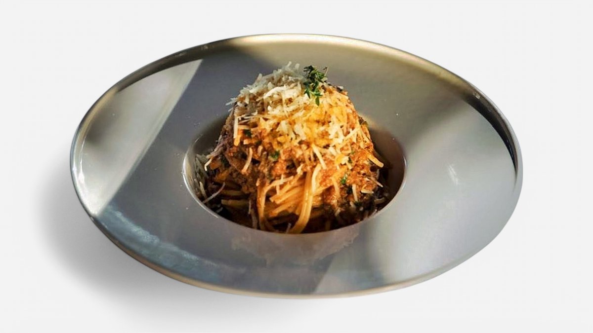 Krem bolonjez, erëza të freskëta, parmixhano.