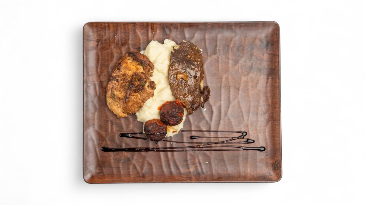 1x Medaljon viçi, 1x fileto pule natyrale, pure, 2x sallata mikse, 2x sheqerpare, 2x pije