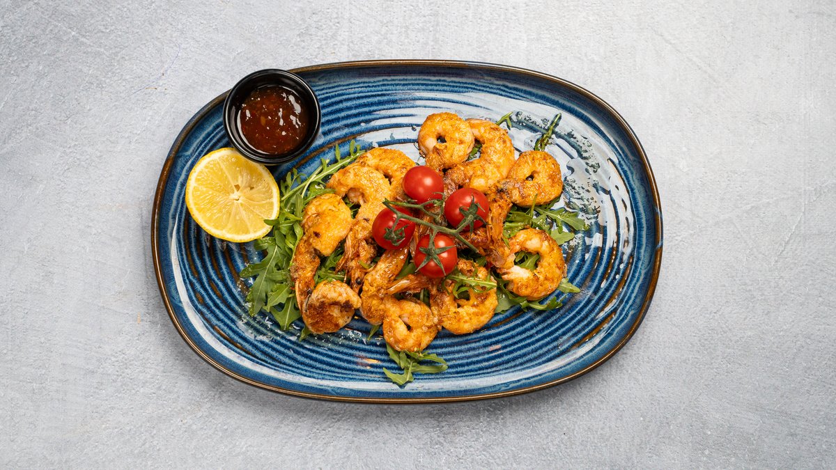 Karkaleca, kadaif, rukola, hudhër, sweet chili, hudhër