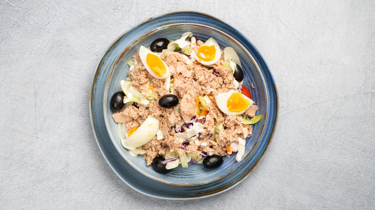 Ton, iceberg, domatina, vezë, qepë, ullinj, sos