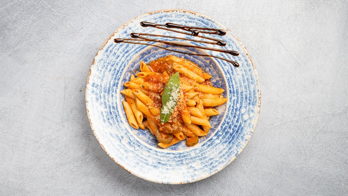 Pasta arabiata, gjysmë sanduiç, patate wedges, pije