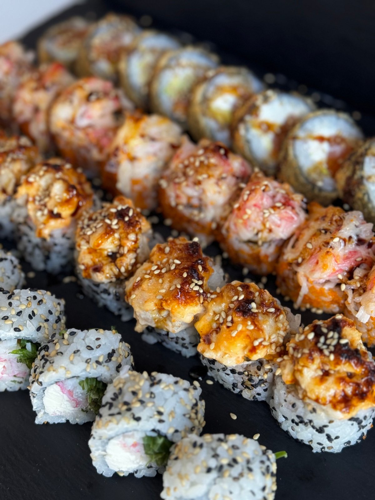 Küpsetatud lumekrab lõhega (Riis, nori, seesam, krab, kurk, lõhe, "Masago"kaste "Unagi"kaste) "Caesar" tempura maki kanaga (Riis, nori, seesam, "Caesar"kaste, tomat, jääsalat, kana, "Unagi"kaste) Philadelfia classic lõhega (Riis, nori, seesam, kreem-juust, lõhe, kurk)