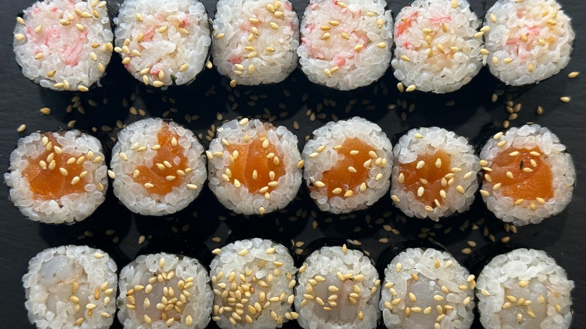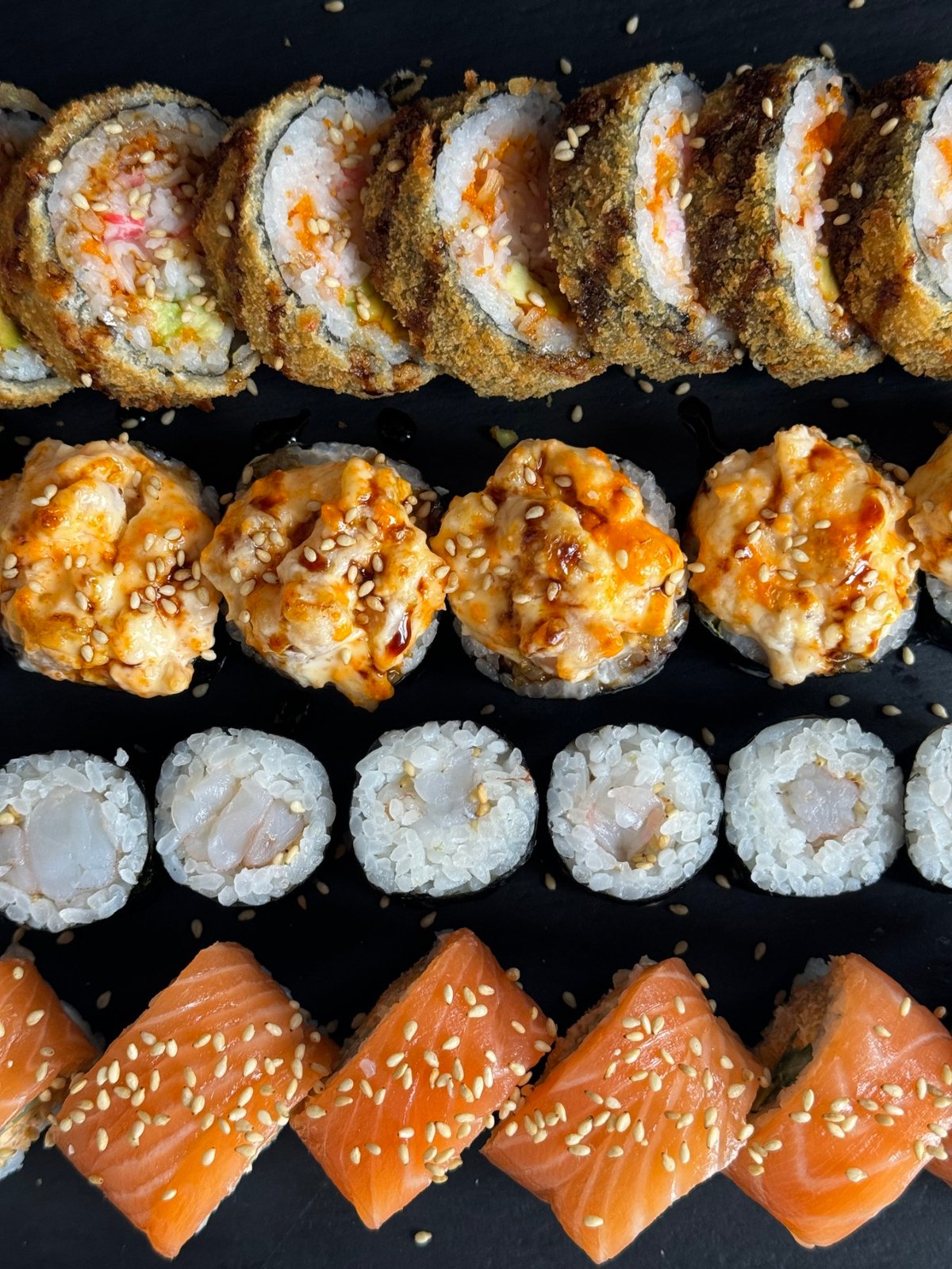 (Riis, nori, lõhe, kurk, avokaado, merekarbid, "Unagi"kaste, seesam)