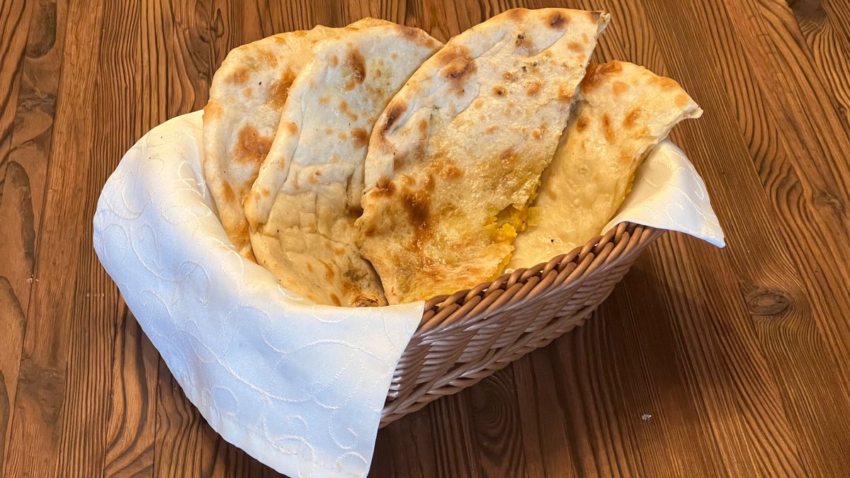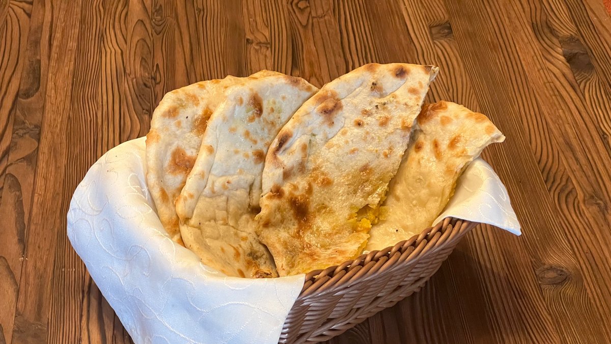 Tandooriahju leib india juustu ja kartuliga Indian bread with indian cheese and potatoes