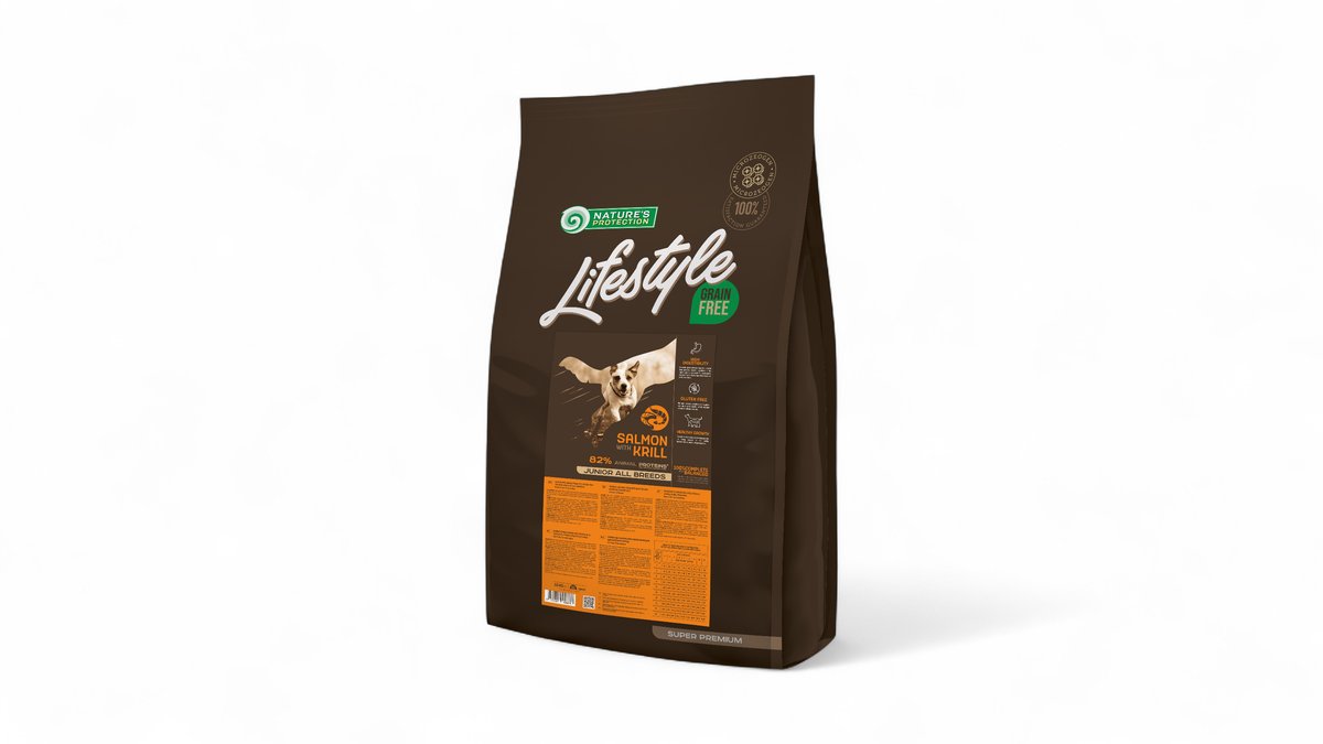 Nature's Protection Lifestyle Grain Free Salmon with Krill Junior All Breeds 10 kg, teraviljavaba kuivtoit igat tõugu noortele koertele, lõhe ja krilliga