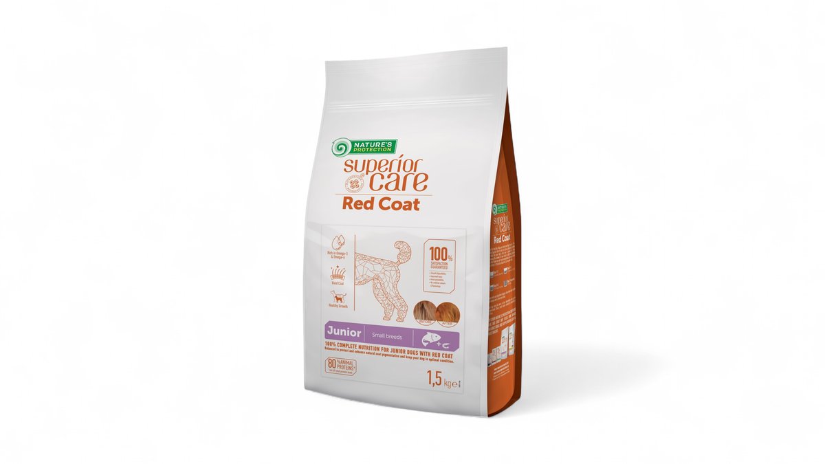 Nature's Protection Superior Care Red Coat Grain Free Salmon Junior Small Breed 1,5 kg, teraviljavaba kuivtoit punase karvaga väiketõugu kasvavatele koertele, lõhega