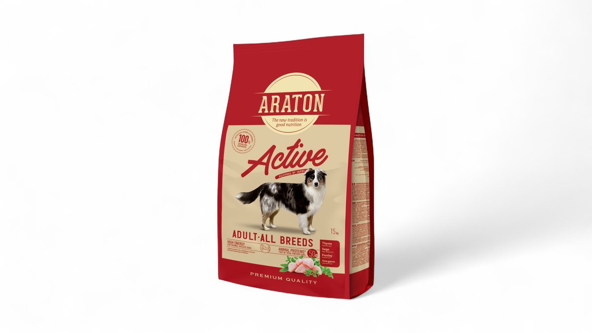 ARATON Dog Adult Active, kuivtoit linnulihaga aktiivsetele, igat tõugu täiskasvanud koertele, 15 kg