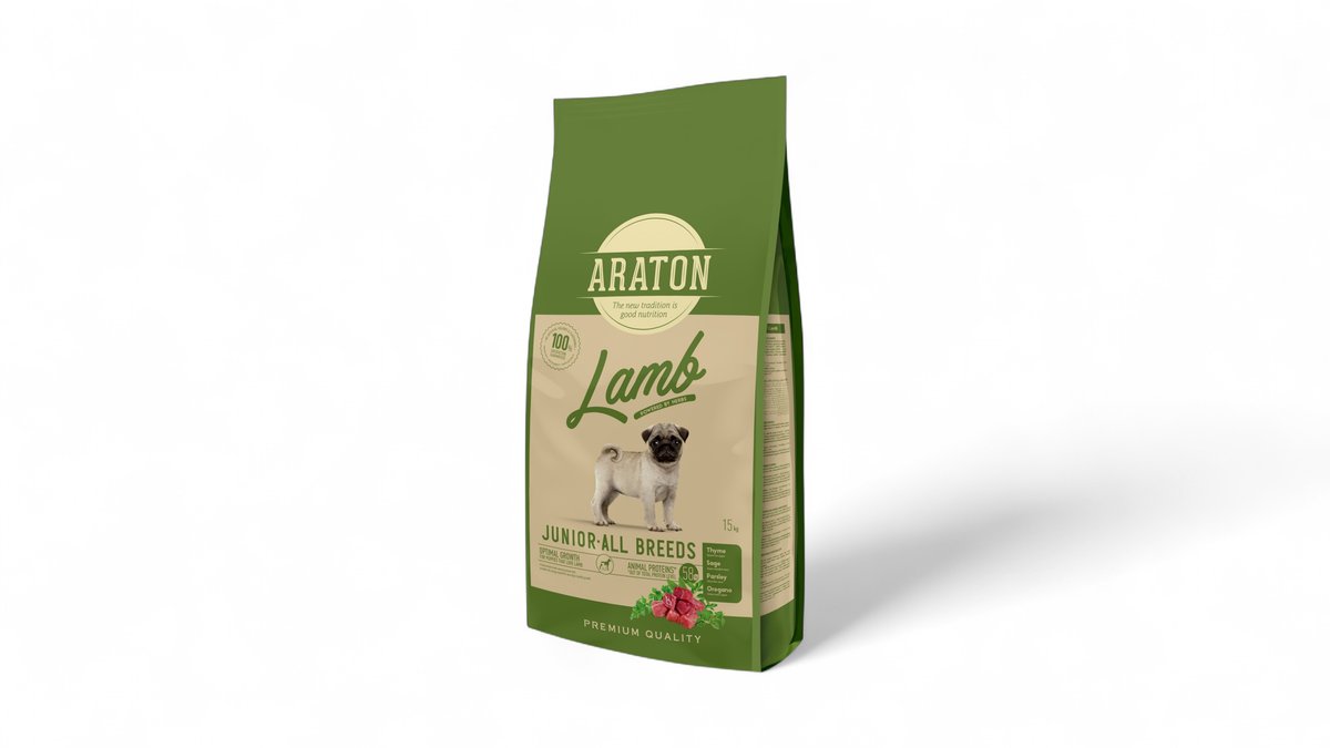 ARATON Dog Junior Lamb, kuivtoit lambalihaga igat tõugu noortele koertele, 15 kg
