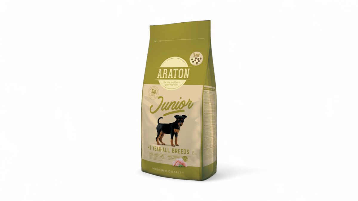 ARATON Dog Junior 15 kg, linnulihaga kuivtoit igat tõugu noortele koertele, VÄIKESED KRÕBINAD