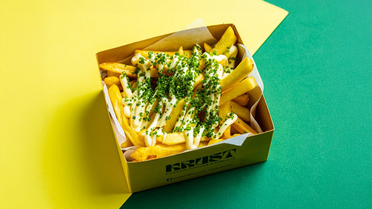 Friikartulid küüslaugumajoneesi ja murulauguga