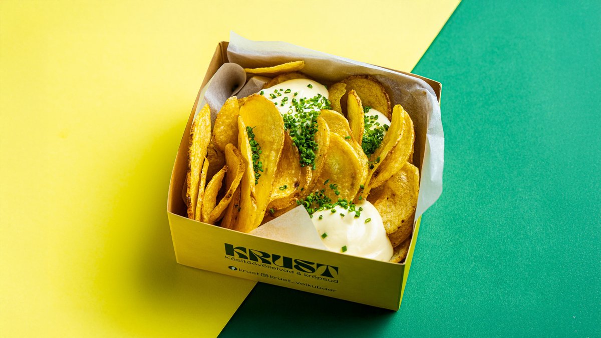 Kartulikrõpsud küüslaugumajoneesi ja murulauguga