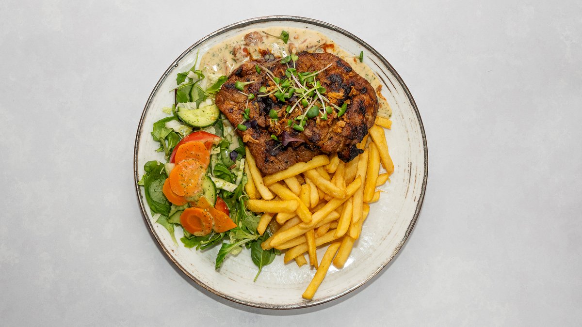 Vegan šnitsel friikartulite ja külmakastmega