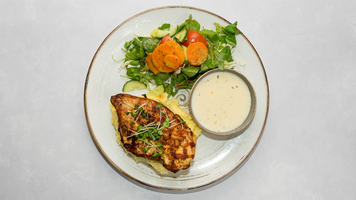 Grillitud kanafilee valgeveinikastme ja kartulipüreega