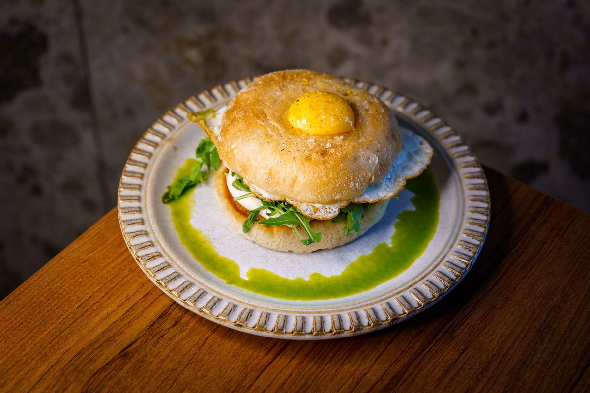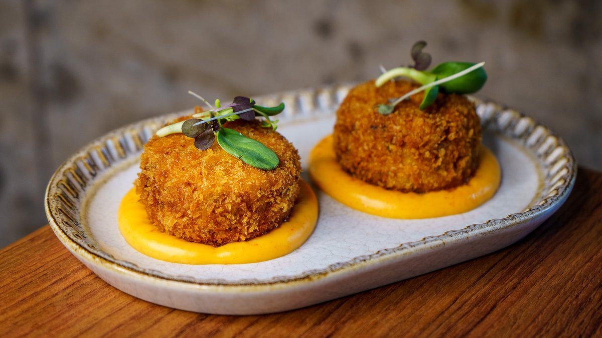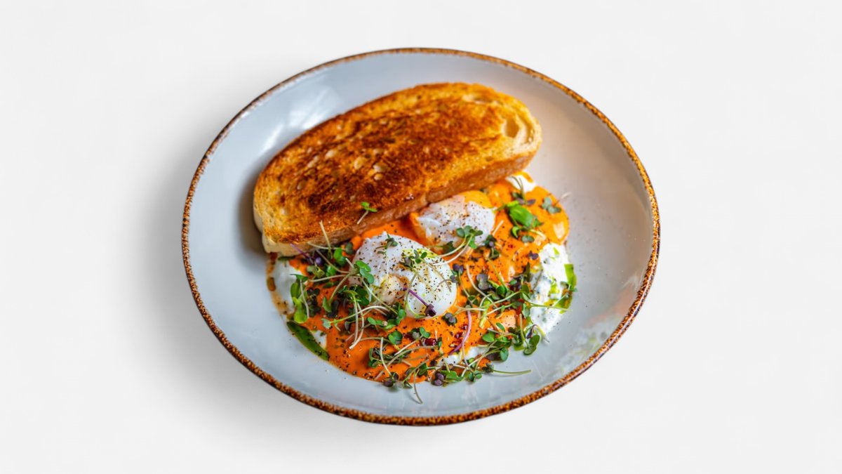 jogurt, feta-paprikakreem, tšilline krõbe sibul, praetud sai