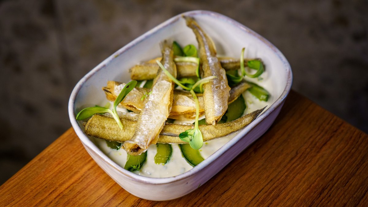 külmsuitsulõhe, till, rukola, ricotta-fetakreem