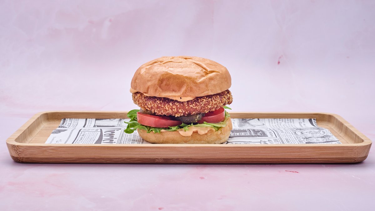 Lillkapsas, kikerherned, panko, tomat, marineeritud kurk, frillis, röstpaprika majonees
