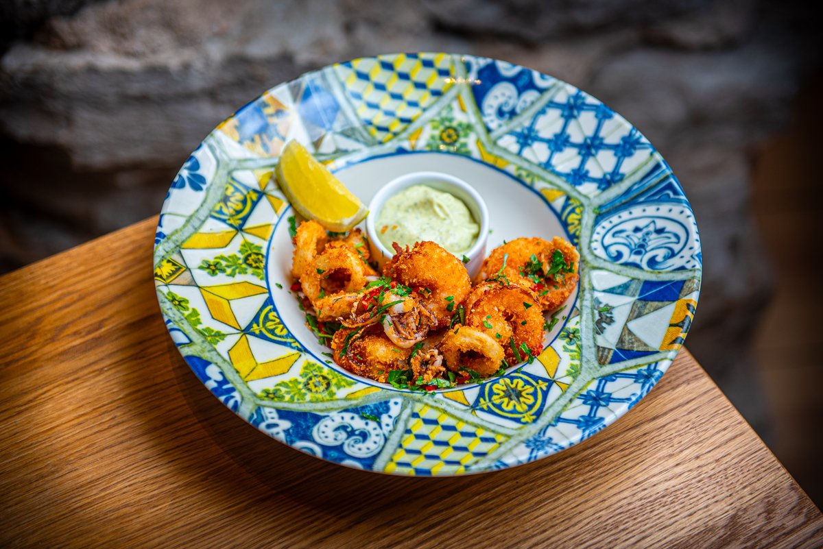 Panko paneeringus frititud mereannid ürdiaioliga Seafood fried in panko breading with herb aioli