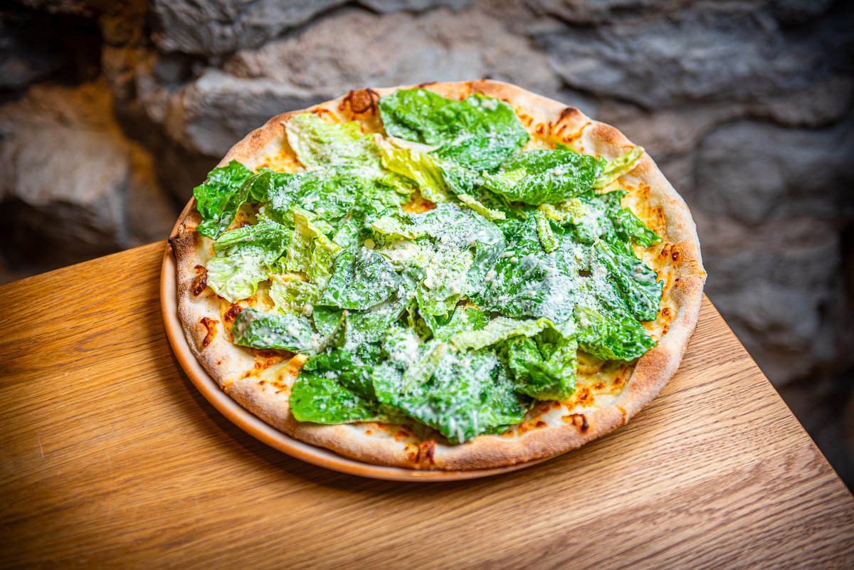 Tomatikaste, fior di latte, terav salaami, jalapeno, nduja, sriracha aioli, tšilli, basiilik, friikartul Tomato sauce, fior di latte, spicy salami, jalapeno, nduja, sriracha aioli, chilli, basil, french fries